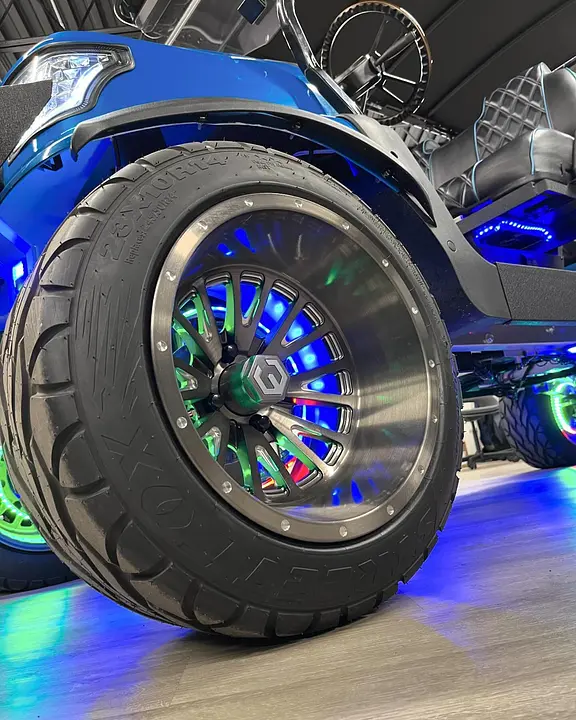Upgrade your cart with sound systems, party lights, lift kits, powder coating, and upholstery.